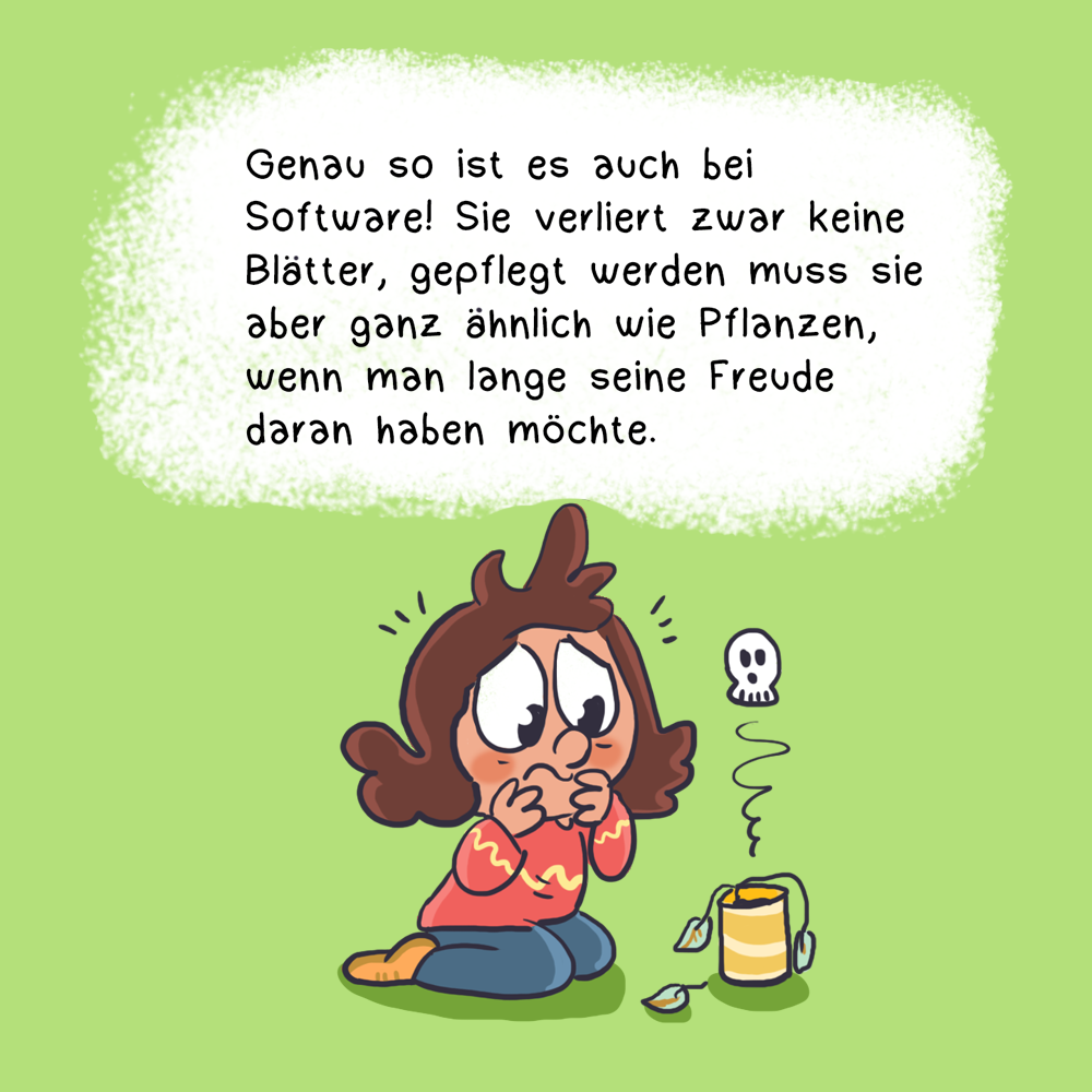 Nun verliert Software zwar keine Blätter, gepflegt werden muss sie aber ganz ähnlich wie Pflanzen, wenn man lange seine Freude daran haben möchte. Das gilt ganz besonders für innovative digitale Produkte oder für komplexe Unternehmenssoftware.